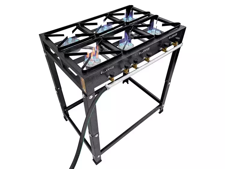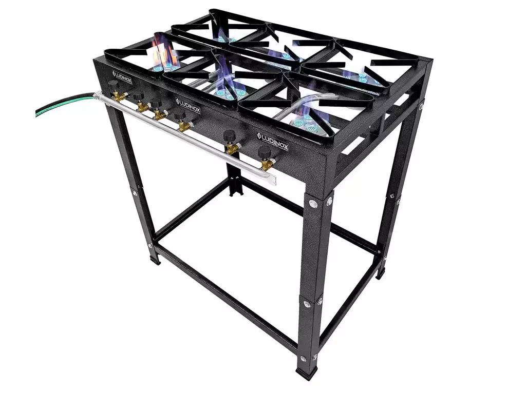 El fogón de 6 hornallas de 20x20 es ideal para preparar comidas en espacios reducidos como campamentos, cocinas móviles, food trucks o departamentos. Perfecto para asados, salteados, comidas orientales y más.